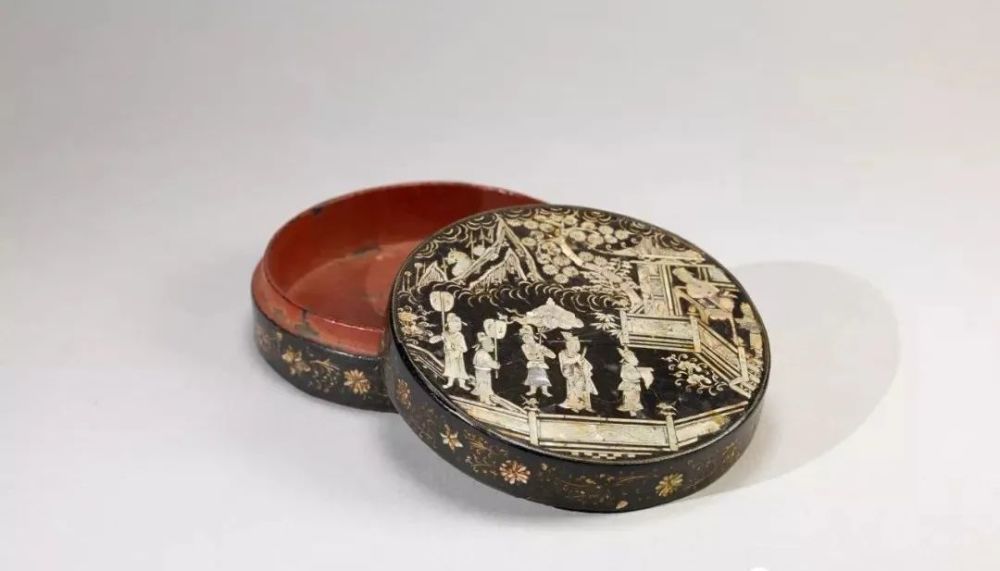 元 黑漆螺钿人物图圆盒