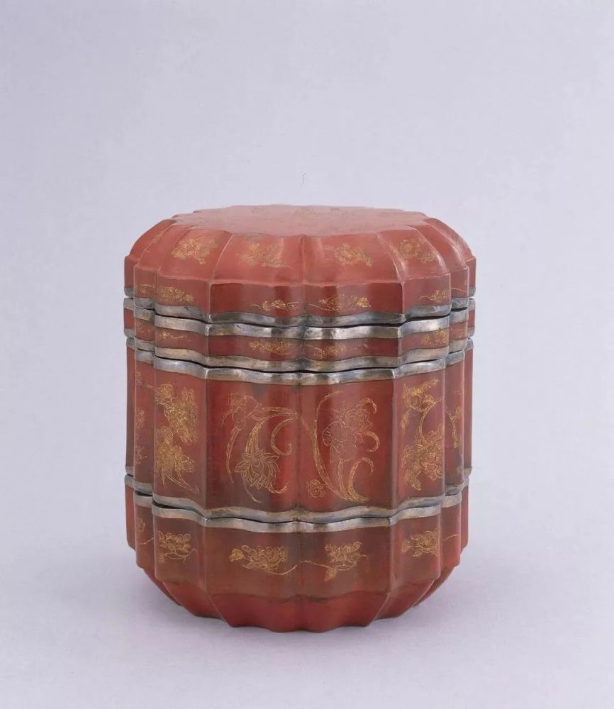 南宋 朱漆戗金莲瓣式人物花卉纹漆奁