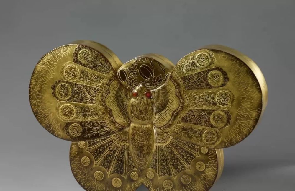 描金,即应用各种手段将纹饰做成金色,包括泥金、上金粉、贴金箔等。浙江瑞安北宋瑞光塔出土的“识文描金舍利函”堪称北宋早期漆器工艺的杰作,清识文描金蝴蝶形盒则可看出清代描金工艺的普遍水准。
