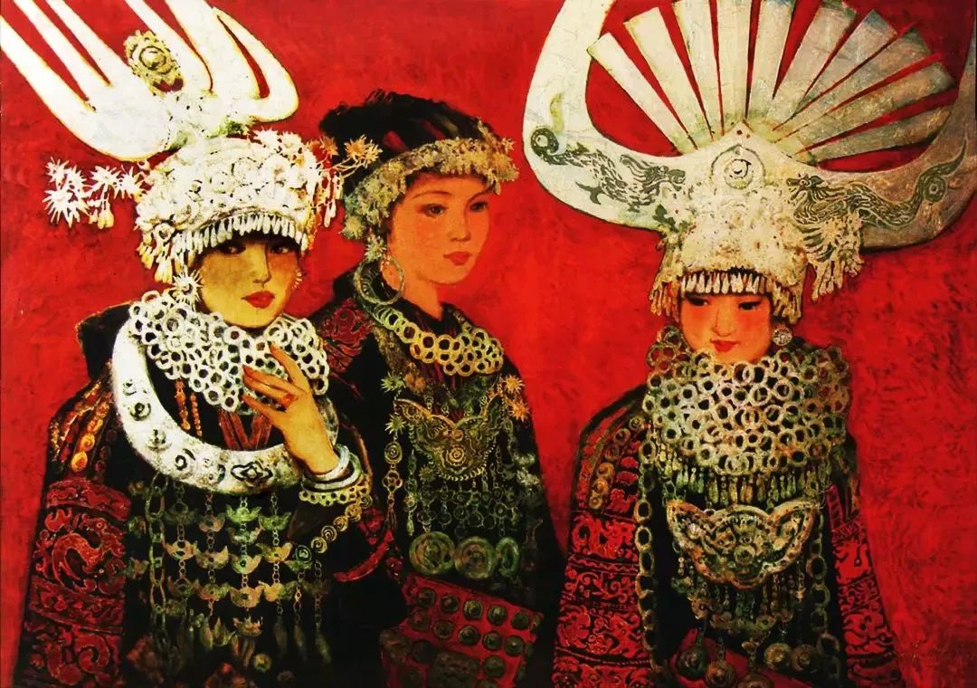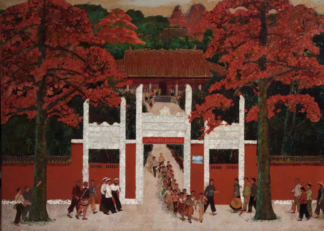 从他归国后直至改革开放前夕的阶段:对于领袖人物的塑造以及具有时代象征和美好寓意的花卉飞鸟的描绘成为其时较为突出的母题表达。
