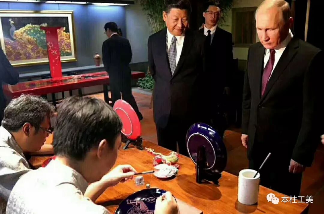 金砖峰会期间,中俄两国元首共同参观闽南非物质文化遗产展,俄罗斯总统普京拿着放大镜细细观赏木雕作品,看得相当入迷,习近平主席则亲自为普京讲解中国的非遗文化。