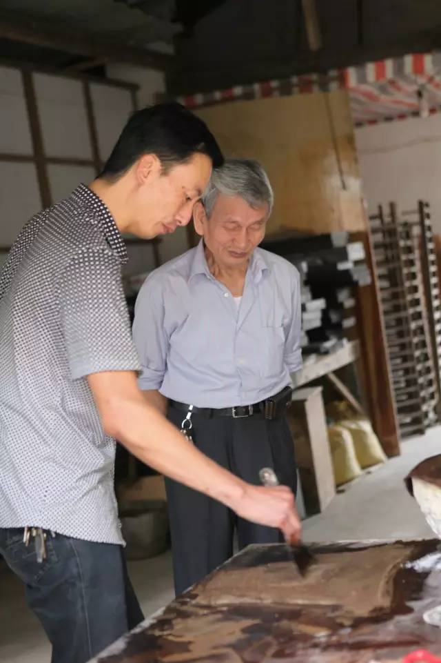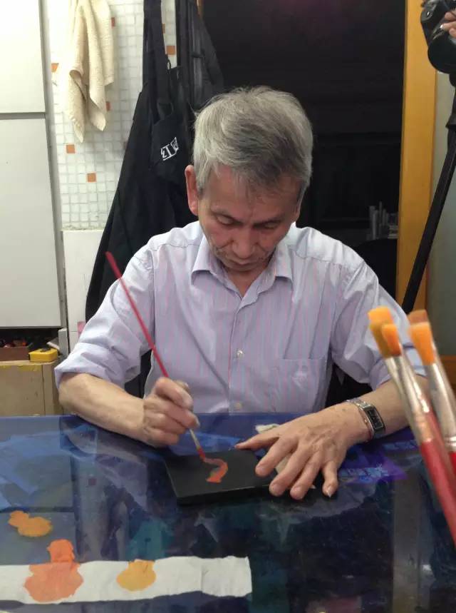 ▲ 郑益坤在福州工艺美术学校从事漆艺创作