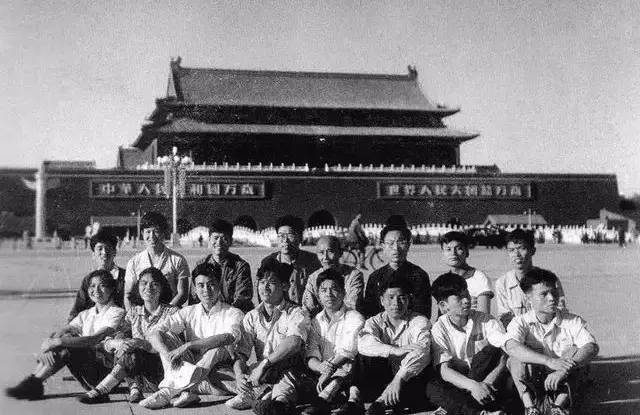 ▲ 1959年,在北京实习期间,老师同学合影于天安门广场上(后排右二为郑益坤)。
