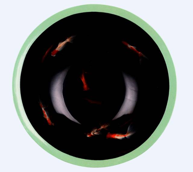 1963年人民大会堂福建厅改建装修的时候,王朝闻(我国著名雕塑家、文艺理论家、美学家)老师看见我画的金鱼,就说“气死猫”。我受沈福文(著名漆器艺术家)老师做金鱼盘的启迪,觉得脱胎漆器的表现可以更生动。鱼是养在缸里,会给人一种幻觉,于是我设计了一个脱胎鱼缸。
