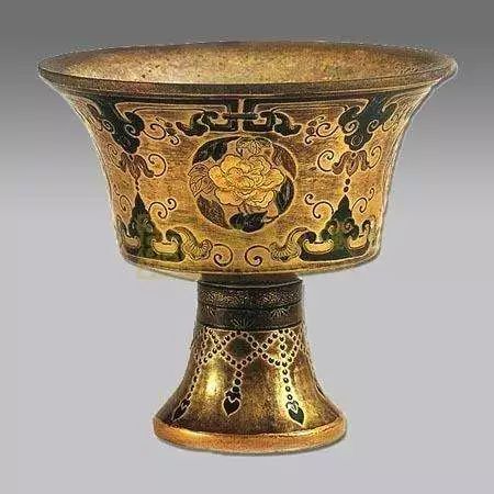 ▲ 金地识文描金彩漆高足碗[清]
