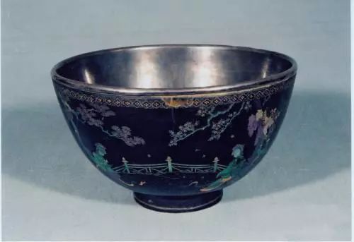 ▲ 黑漆嵌螺钿人物纹碗[清]
