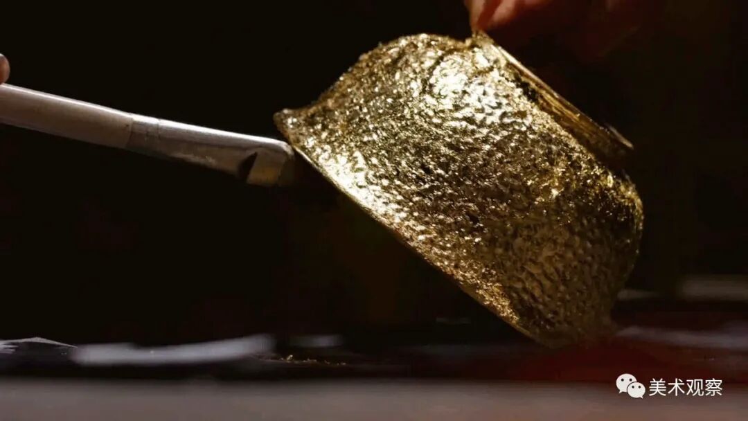 脱胎漆碗的制作流程7-贴金箔