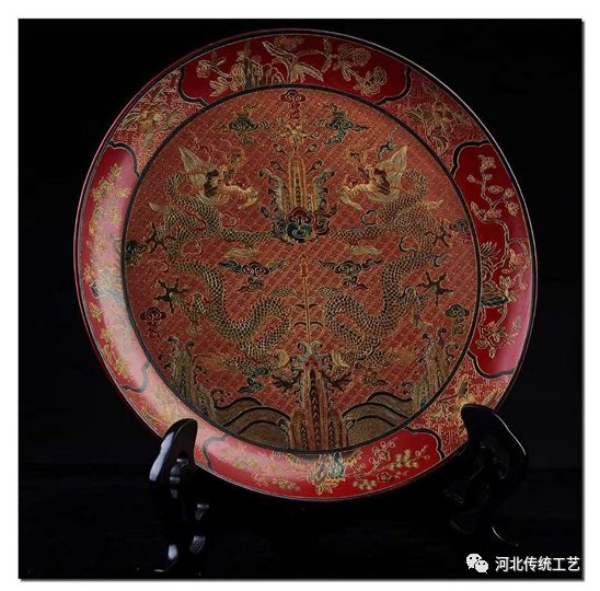 雕填戗金双龙盘