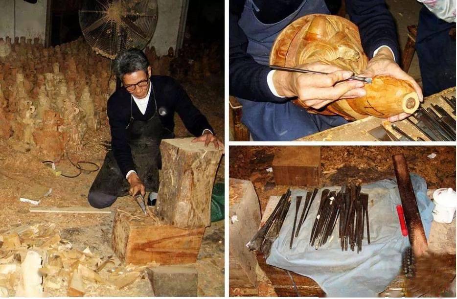 现在的漆线雕艺术,只是将传统神像制作工艺中的“漆线装饰”步骤发扬光大。而对于蔡氏老艺人而言,制作雕像才是第一步。若不会这一步,即便艺人的漆线装饰技艺再好,也只是“半吊子”手艺,但如今能够掌握造像及装饰全套工艺的年轻艺人,几乎绝迹。在潮湿的南方,木头不是理想的材料。为此,蔡水况掌握了脱胎漆器的全部工艺,将漆线雕与之结合,为此还曾被生漆毒倒。