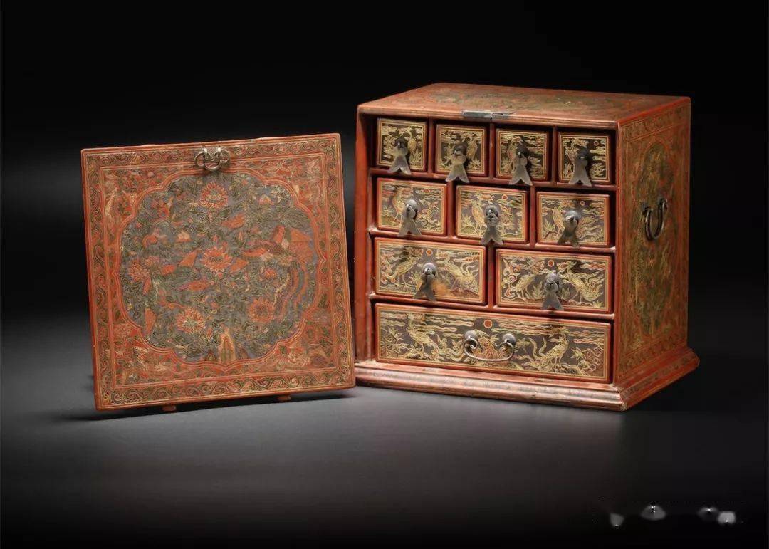 明嘉靖 戗金彩漆凤鸟纹长方匣