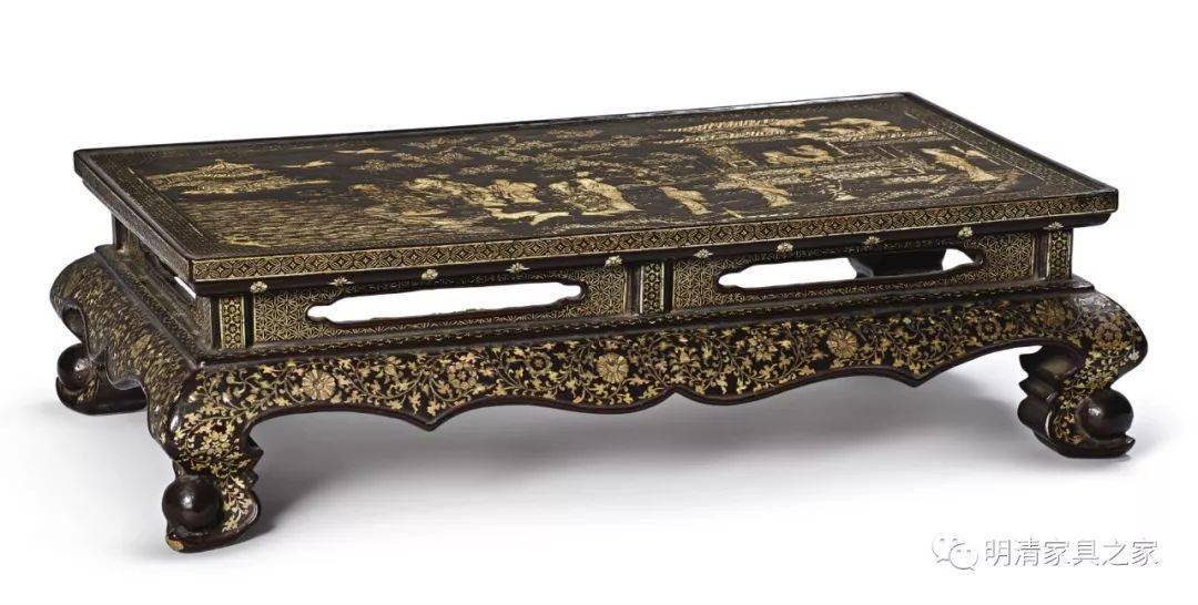 十七世纪 褐漆嵌螺钿仙聚图炕桌