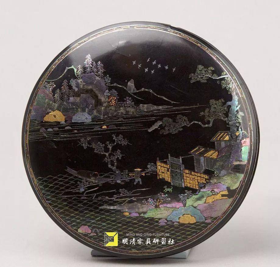 清 黑漆嵌螺钿诗意图盖盒 千里款 普林斯顿大学博物馆藏