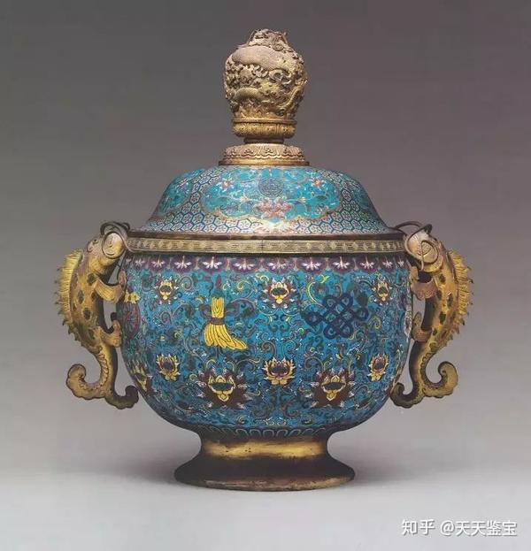 明代的宣德皇帝十分重视对铜的冶炼和对铜器的制造,制造出了闻名遐迩的龙纹盖罐。这一时期,中国景泰蓝工艺已经成熟,制品多为宫廷御用和寺庙祭祀用的罐、尊、炉、鼎等。器物多以蓝色釉为地,上施彩色釉。