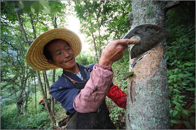 工人在割漆