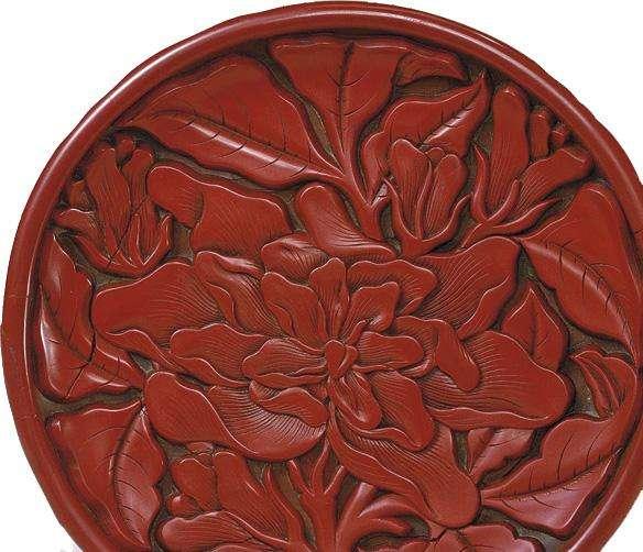 雕漆,经过元代的辉煌,到了明永乐年间达到了巅峰。明代雕漆分出了剔红、剔黑、剔黄、剔彩、剔犀等多种门类。明永乐年间的剔红堆漆肥厚,刀工圆润丰腴,漆面光亮润泽,多为花卉禽鸟、云龙缠枝图形。花卉多以整株大型花朵为主,如牡丹、玉兰、荷花等。布局丰满,漆层厚实。