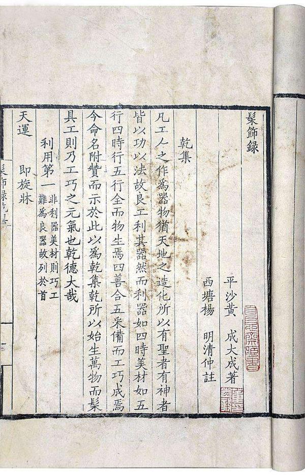 明代漆艺另一个重要的事件便是《髹饰录》的面世。原作者为明代隆庆年间的著名新安平沙工匠黄大成。此书经嘉兴名匠杨明注解,成为一本上溯唐宋下及明代的重要技法史料。自南唐时期的《漆经》失传以来,《髹饰录》为中国古代漆艺史上第一部漆艺专著。