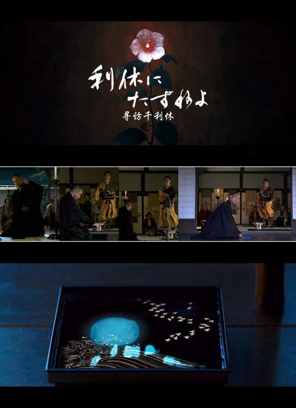 电影《寻访千利休》中则从艺术的角度展现了漆器之美。织田信长寻访天下的宝物,于是众人带着不世的奇珍自夸。这时候迟到的千利休,只带来寻常一个漆盒,在大家鄙夷时,拉开移门,将漆盒置于走廊上,倒上清水。明月恰好而至,倒影其中,波光嶙峋,月影与漆盒上的景物融合,顿时美不胜收。