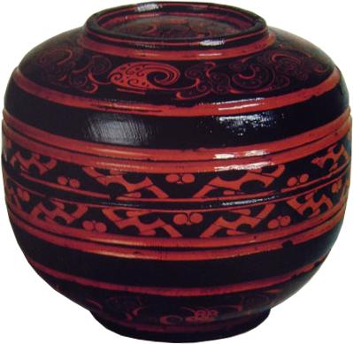 这个时期漆器艺术的表现手法,无论是造型艺术,还是装饰艺术,均处于古朴的阶段。如饰带纹、回纹、云纹等简单的几何纹饰;绘黑、红等并不复杂的色彩;器形则注重实用,几乎没有附加装饰。