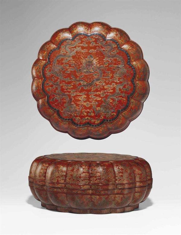 填漆戗金云龙纹菊瓣式捧盒漆器与影视