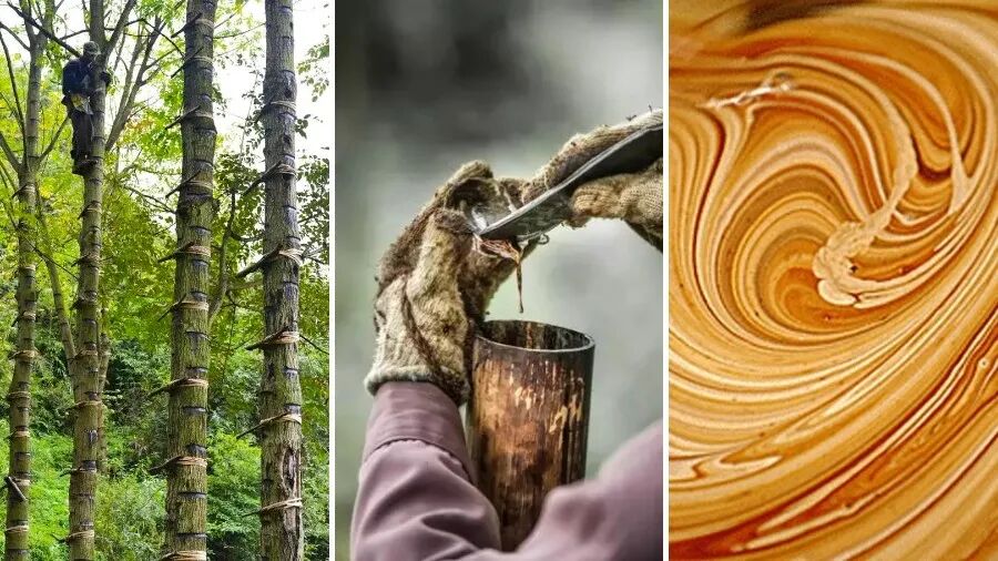 刚刚割下的乳白色生漆,与空气接触后,逐渐氧化变成神秘玄幽的黑色。“似乌金而非寒,明理堂皇。”