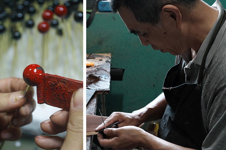 哪怕只是一颗漆珠,整套下来也需要上百道工序;少则两个月,多则半年甚至更久。