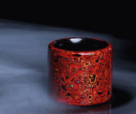 银珠、石黄、特红、蓝靛、松烟等天然矿物质原料,在大漆的基底之上,不断流淌出变幻莫测的美妙图案。