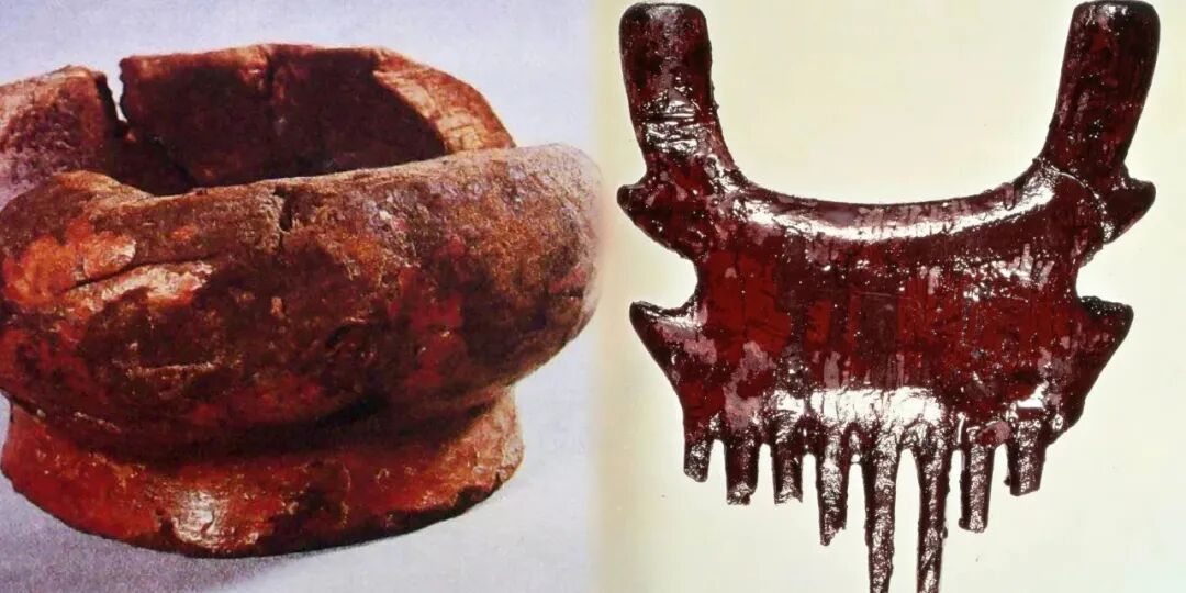左 河姆渡出土的朱漆碗 VS 右日本绳文晚期朱漆梳