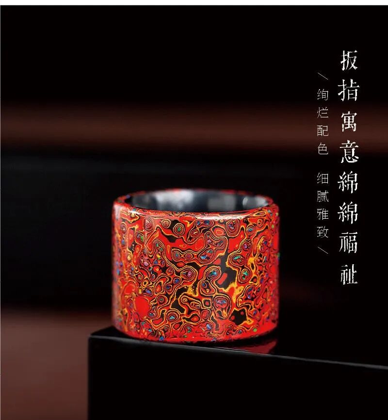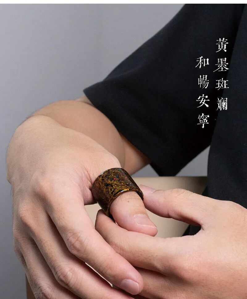 其这枚大漆扳指,漆面绚丽,指尖流光,儒雅的霸气!