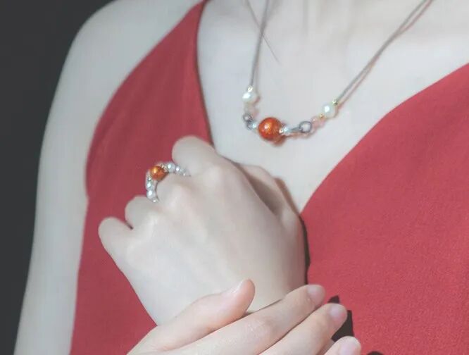 玉蝴蝶:自带贵气的金色犀皮漆珠,如一只斑斓流光的玉蝴蝶,在水边翩然起舞。