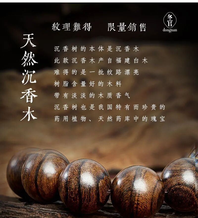 男款选用稍大一点的天然沉香木珠,更显沉稳厚重,淡淡的木质香气。