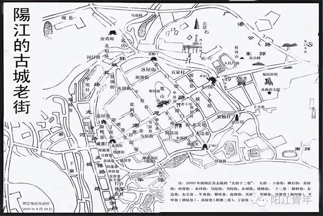 2000年版《阳江县志》中记载了阳江老城“九街十二巷” ,其中: