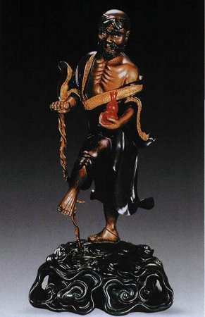 “夹纻”这门技艺在六朝时非常盛行,被广泛地运用于大型佛像的制造中。当时,要建造一座寺庙的大佛首先得用泥塑成胎,然后用漆把麻布贴在泥胎外面,待漆干后,反复再涂多次,最后把泥胎取空。因此这种佛像又有“脱空像”之称,用这种方法塑像不但柔和逼真,而且质地非常轻。可惜的是,晚唐时期,大多数漆艺佛像都被毁坏,“夹纻”技术也一度失传。