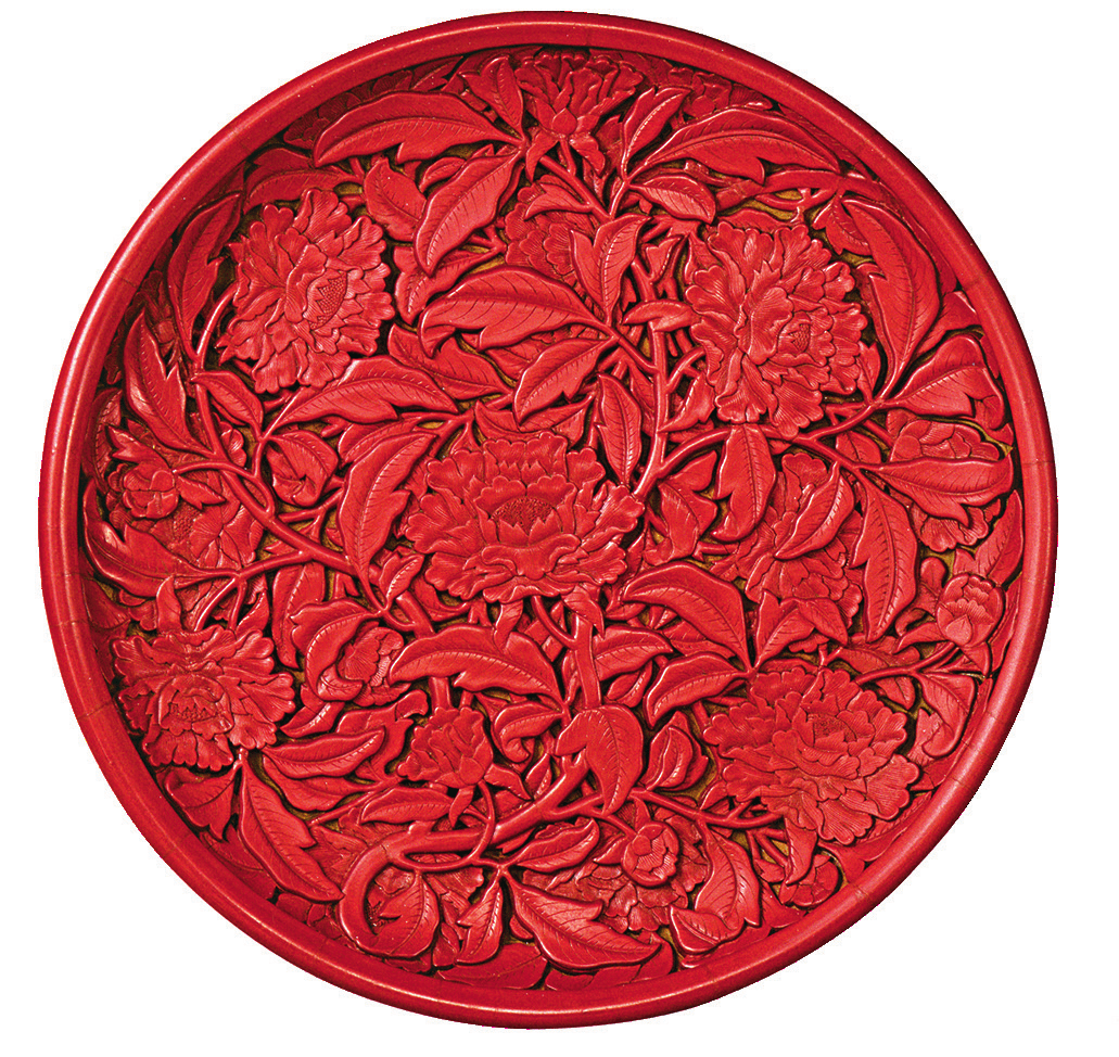 剔红属于“雕镂”类,一般情况下,人们说雕漆往往是指剔红,雕漆在传世的明代漆器中占有最大的比例。一般认为雕漆源于唐宋,在唐代已经有雕刻较为平面的剔红,但现在尚未发现标准的传世作品。宋元两代制作的剔红,藏锋不露,花纹起伏圆滑,锦地雕刻精致;明早期的雕漆风格继承前代,浑厚圆润,藏锋清晰,明晚期的雕漆风格截然不同,以嘉靖、万历时期为代表,结构严谨,雕刻细腻,不善藏锋。