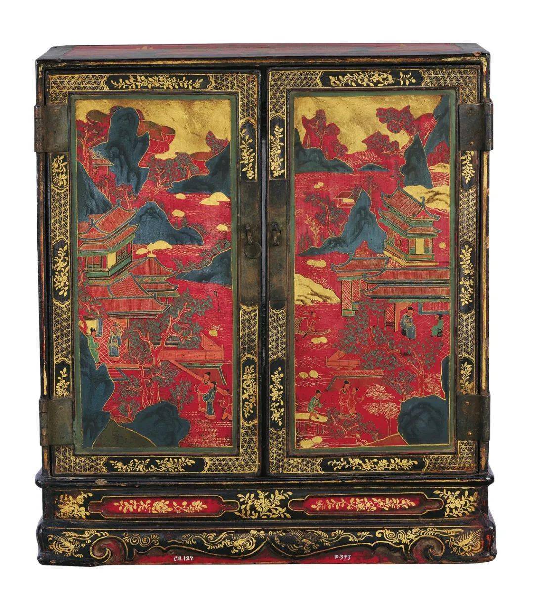 (清) 朱漆彩绘描金小橱柜