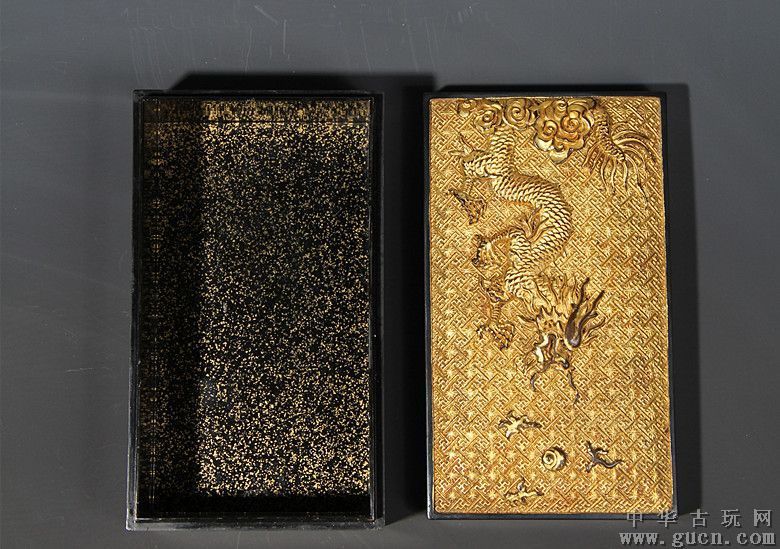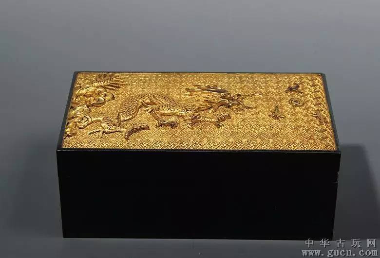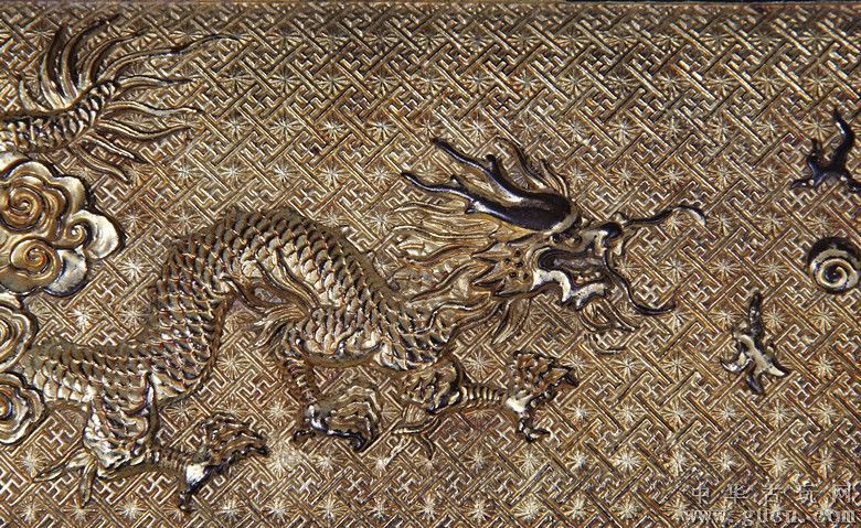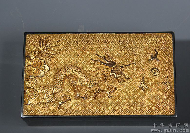 清末民国沈绍安恂记金漆印锦龙纹盒