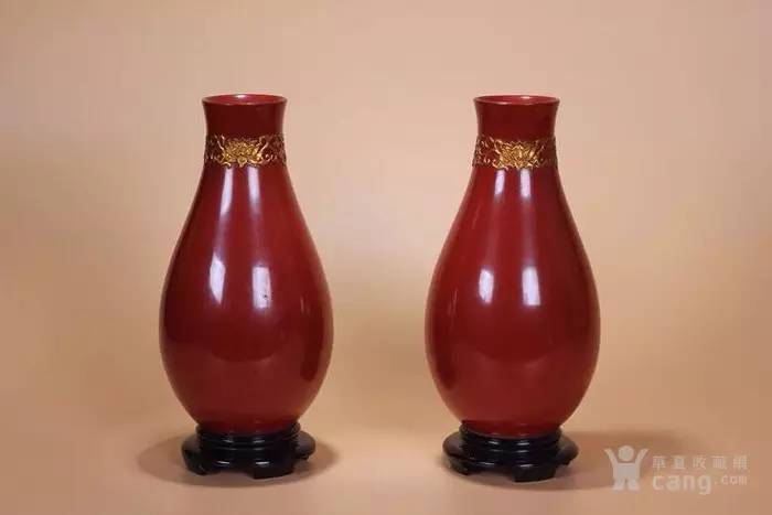 珊瑚地印锦宝相花纹 脱胎对瓶 年代:建国初