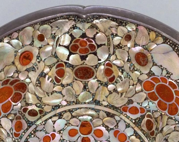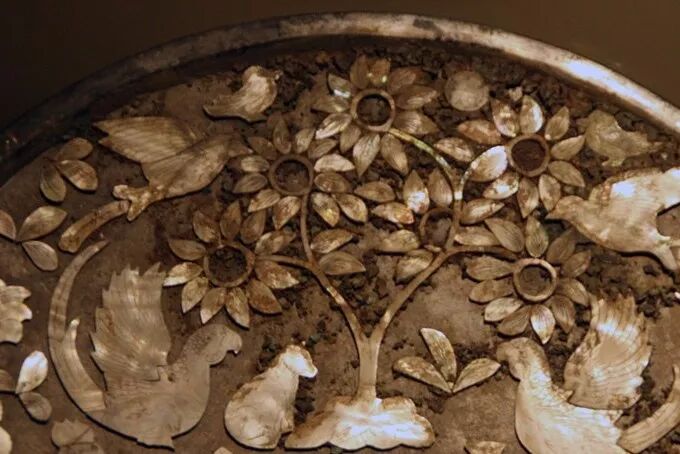 螺钿起源于商代,上世纪80年代,在北京房山区琉璃河燕国墓葬中就出土过西周螺钿漆器。到了唐代,螺钿工艺发展成熟,唐人始创将螺钿用于铜镜装饰,这从日本正仓院收藏的传世螺钿精品和国内考古出土的螺钿铜镜中可见一斑。