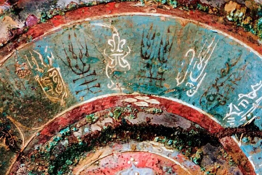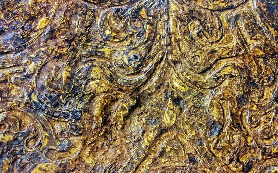 这面朱漆彩绘镜的外区描绘了四组人物,内区是错入镜面的鸟虫篆铭文,对照铭文和出土的战国青铜器,会发现有着强烈的楚地风格。有资料表明,彩绘镜主要出现在汉文帝后期至汉武帝前期,流行大概半个世纪,因此,现在存世数量不足20面,其中图案清晰、色彩鲜艳的,当数展出的这面和中国国家博物馆收藏的另一面。