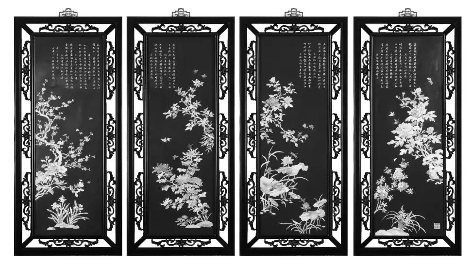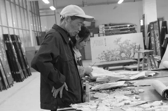 以写生为基础,将人物、花鸟、房廊、树石等自然素材用于漆器画稿的设计;