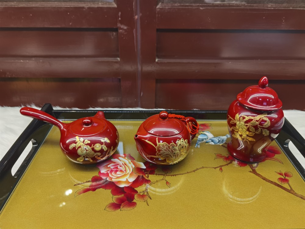 这是用平遥推光漆艺制作出的茶具。新华社记者王学涛摄。