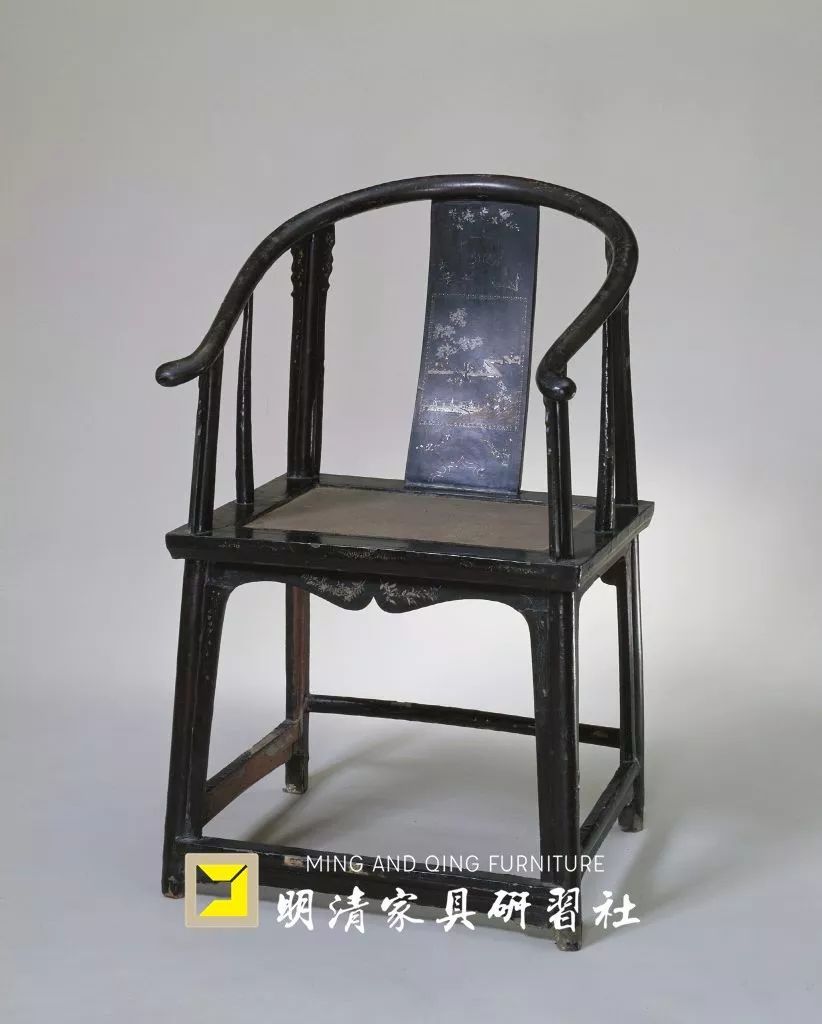 ▲黑漆嵌螺钿圈椅,通高107cm,宽64.5cm,纵48.5cm