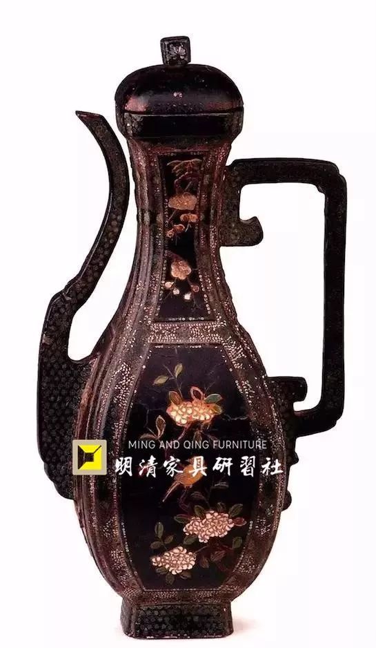 ▲明代 江千里制黑漆嵌螺钿执壶国家博物馆藏