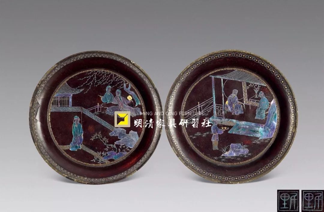 北宋宣和年间(1119~1125)待诏画家苏汉臣在《秋庭婴戏图》中已描绘了薄螺钿漆木家具坐墩(原画现藏台北故宫博物院)。