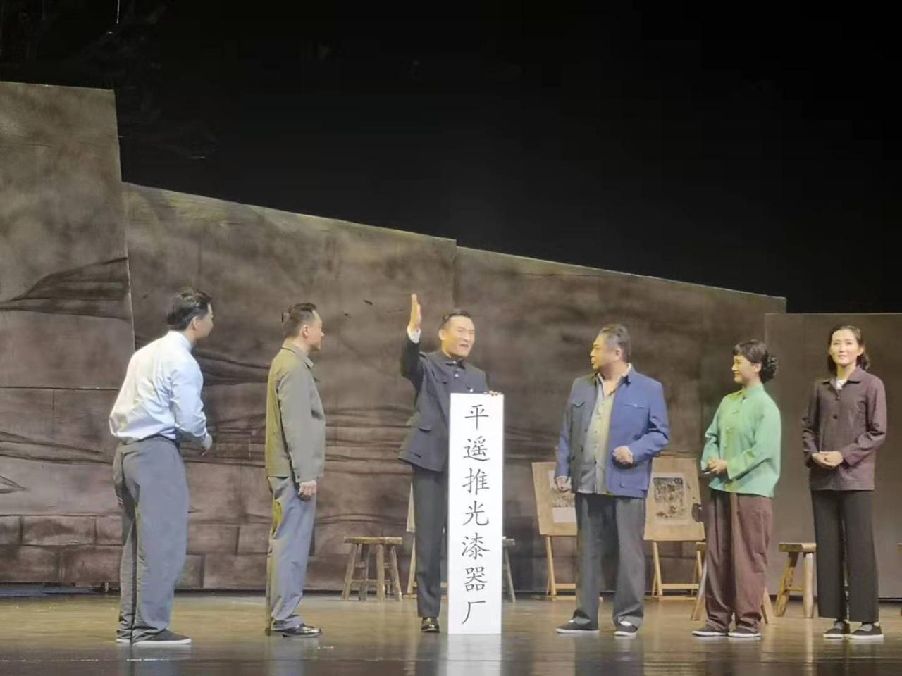 在舞台呈现推光漆在整个近代跨度长达几十年的发展是很困难的。两个小时的戏不可能讲完剧组所有想表达的内容,所以取其典型时代、典型事件、典型情境、典型人物关系,作为戏剧样式呈现出来,在舞台的戏剧美方面追求写意和写实结合的特性,强调绘画感及戏剧的唯美精神和剧场的大美感。从古至今,平遥的古城在,推光漆即在。也许大家的服饰在变,但中国传统、山西传统的风土人情、精神内核和精神气质是不变的,是一直承续下来的。