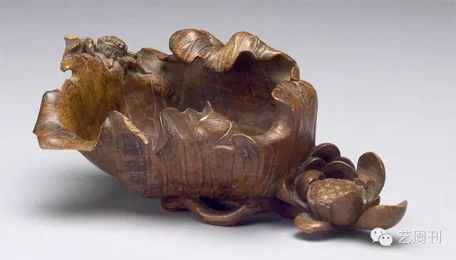 清 西元1644-1911朱三松雕竹荷叶式水盛