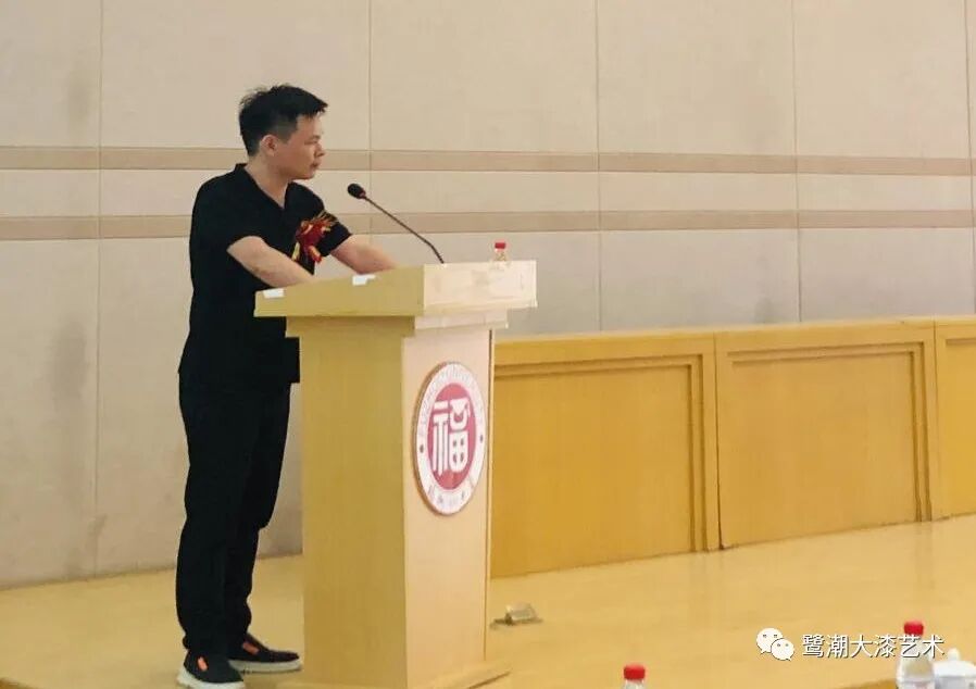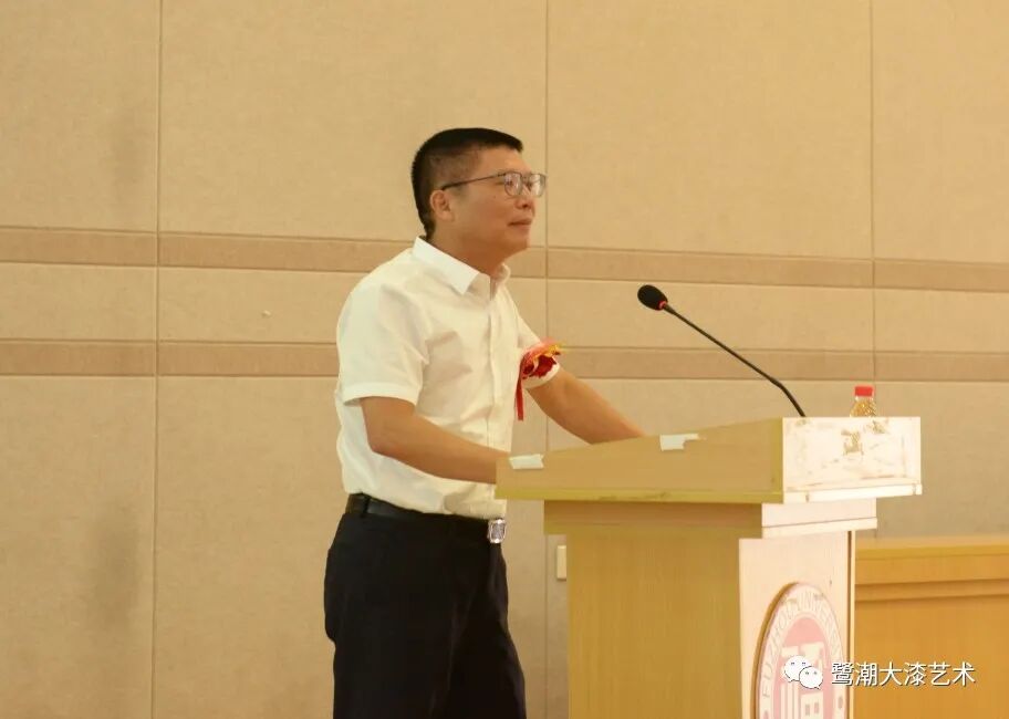 开班仪式由该项目负责人中国美协漆画艺委会委员,福州学厦门工艺美术学院漆艺系主任苏国伟担任主持,中国美协漆画艺委会主任陈金华教授、厦门市文化和旅游局党组成员一级调研员叶细致先生、福州大学厦门工艺美术学院院长李超德教授、福州大学厦门工艺美术学院佘国华教授、江西师范大学美术学院王燕教授分别上台致辞为本次高研班正式拉开序幕。