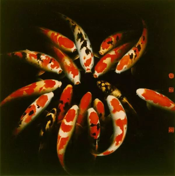 乔十光(清华大学美术学院教授、现代漆画创始人):精湛娴熟的技术也是其成功的要素。彩绘的厚薄变化,渲染的浓淡不一,罩染的轻重有别,研磨的多少不同,全靠经验的积累,必须经过长期的实践才能有所体会。郑益坤通过无数次的实践,积累了丰富的经验,在他的笔下,漆遇到了金鱼题材,其独特的美才有了用武之地。金鱼的题材遇到了漆才得到生动的表现,大漆与金鱼真是天作之合。