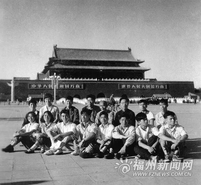 1959年,在北京实习期间,老师同学合影于天安门广场上(后排右二为郑益坤)。