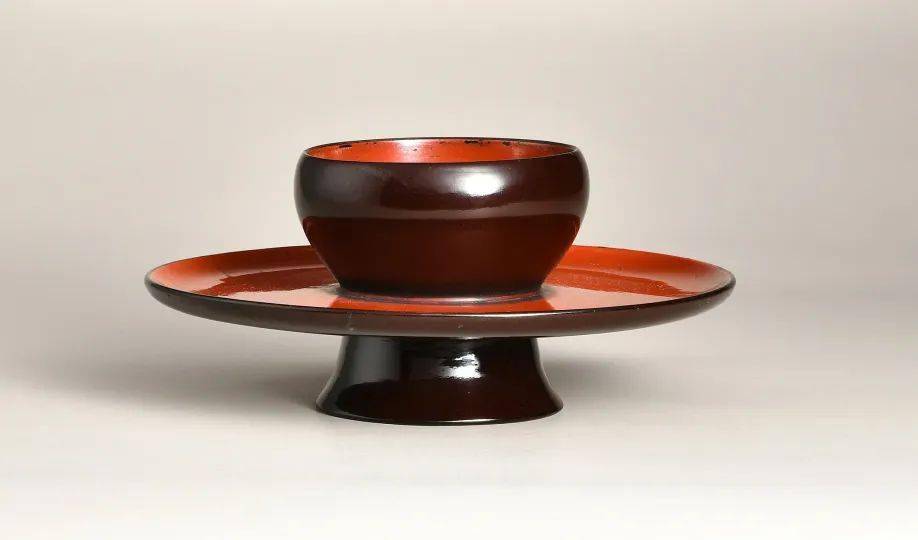 明 褐漆红漆盏托
