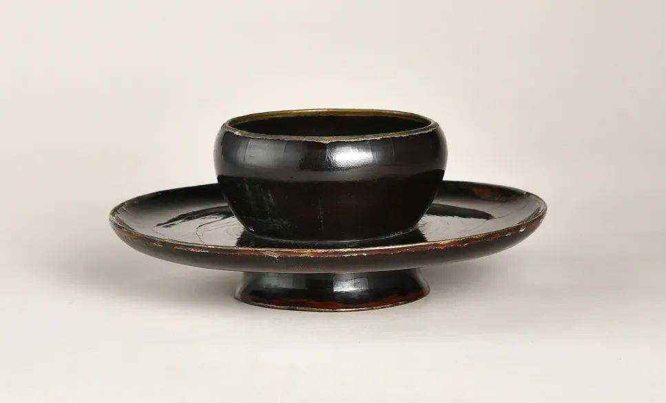 明 黑漆包铜口盏托